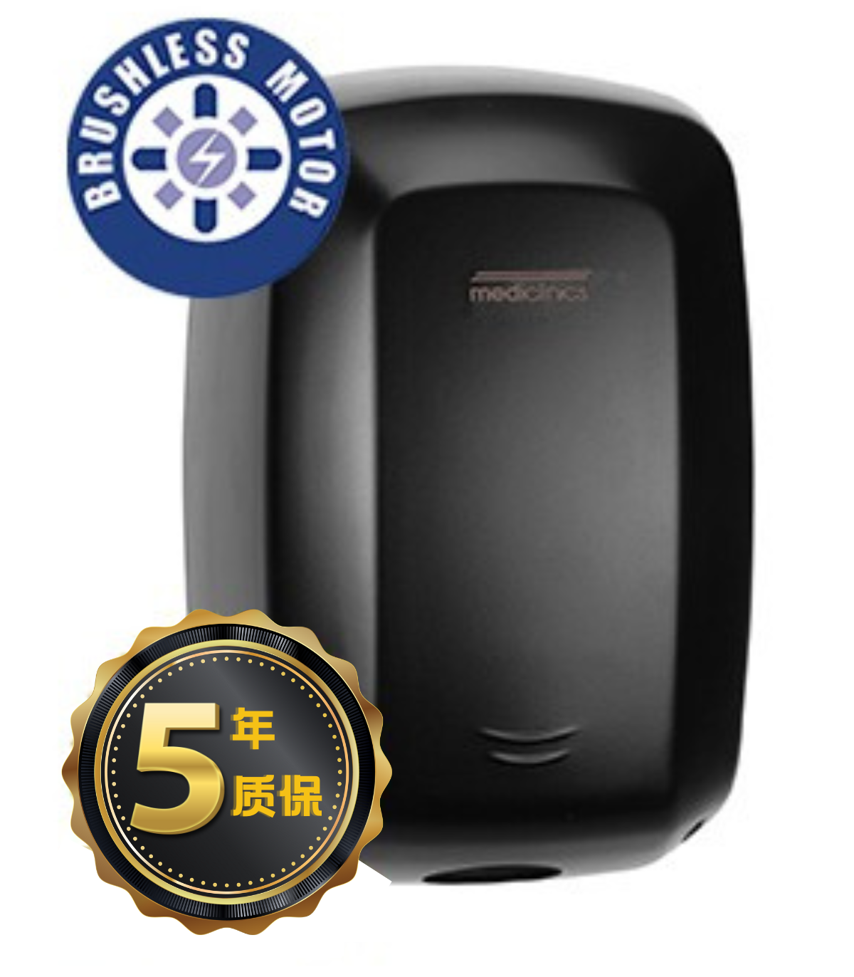 传感器操作的 Machflow® Plus 干手器,带无刷电机和钢盖,哑光黑色环氧饰面 它可以选择与 HEPA 过滤介质一起出售,代码为M09AB-FIL,也可以与过滤器和离子发生器“Ion Hygienic”一起出售,代码为M09AB-I。