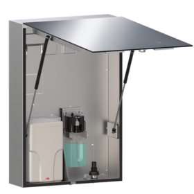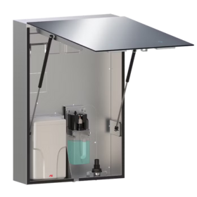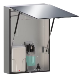 VELARE™ BTM 系统 – 带无框镜子、皂液器和高速干手器 (208-240V) 的不锈钢柜