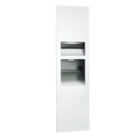 PIATTO™ 完全嵌入式三合一擦手纸分配器、高速干手器和废物容器 – (208-240V) – 白色酚醛门