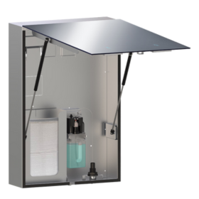VELARE™ BTM 系统 – 带无框镜子、皂液器和纸巾分配器的不锈钢柜