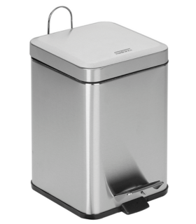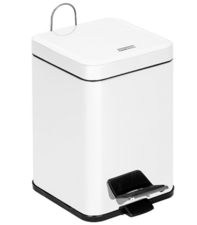 脚踏式方形垃圾箱 6L 容量 白色饰面
