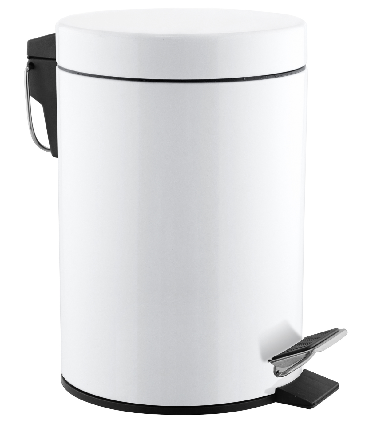 • 室内圆形垃圾桶,容量3L,钢制,白色表面,通过踏板操作,可直接放在地板上。