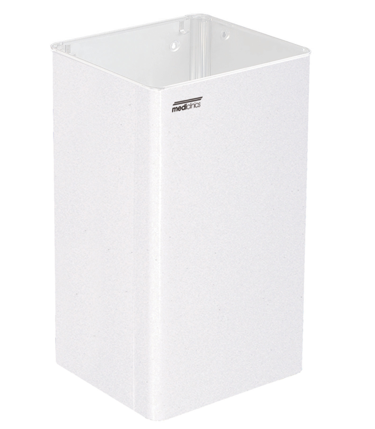 • 无盖废物容器,容量65L,一件式制造,完全密封。通过设备背面钻的 2 个槽孔安装在地板或墙上。