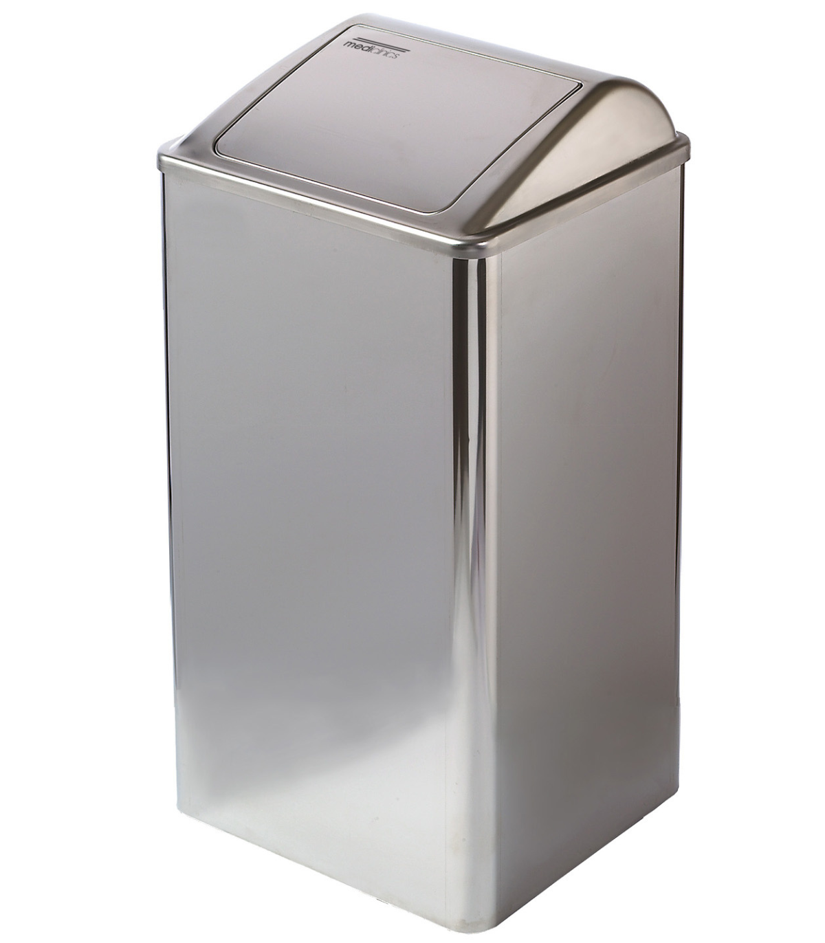 带自动关闭盖的废物容器,由 AISI 304 不锈钢制成,表面光亮,容量 65L