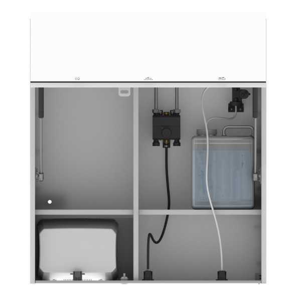 SWAR 镜子后面 肥皂水 空气配有可上锁的镜子的完整卫生柜——镜子后面有肥皂水空气。包括高速干手器、混合阀、免触式水龙头、免触式皂液器和 LED 象形图,以提供直观的用户指导。配备遥控器来调节肥皂剂量、LED 颜色和其他自定义设置。组合系统包括由红外传感器操作的水龙头、皂液器和干手器。具有手动集成恒温混合器,用于防烫操作和温度控制。