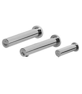 一体式洗手盆是一种独特的洗手和干燥系统,集成于洗脸盆本身。All-in-One 是一款自动皂液器、水龙头和干手器,安装在洗脸盆内,因此您无需在浴室里走动。该多合一系统既可以安装在墙上,也可以安装在洗脸盆上,可以作为一套产品提供,也可以作为独立产品单独提供。一体化系统的设计、美观和功能使设计师能够创造出简约、实用和安全的空间。传感器操作的干手器和水+皂液器水龙头,均由镀铬黄铜制成。