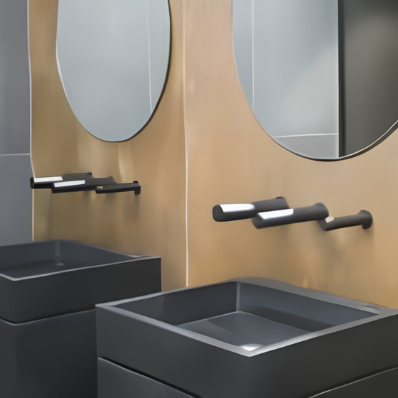 免触式皂液器、免触式水龙头和高速干手器,供公共卫生间使用。由红外传感器操作。提供全黄铜机身或 AISI316 材质。