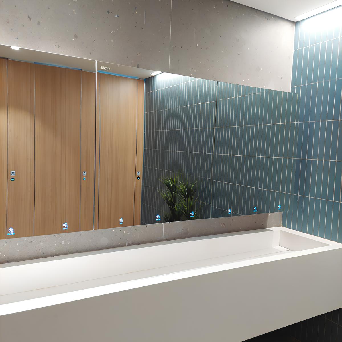 配有可上锁的镜子的完整卫生柜——镜子后面有肥皂水空气。包括高速干手器、混合阀、免触式水龙头、免触式皂液器和 LED 象形图,以提供直观的用户指导。配备遥控器来调节肥皂剂量、LED 颜色和其他自定义设置。组合系统包括由红外传感器操作的水龙头、皂液器和干手器。具有手动集成恒温混合器,用于防烫操作和温度控制。