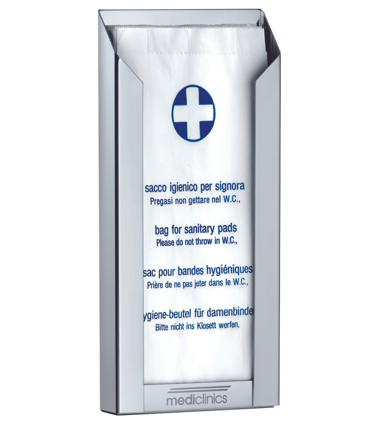 卫生袋分配器由 AISI 304 不锈钢制成,表面光亮