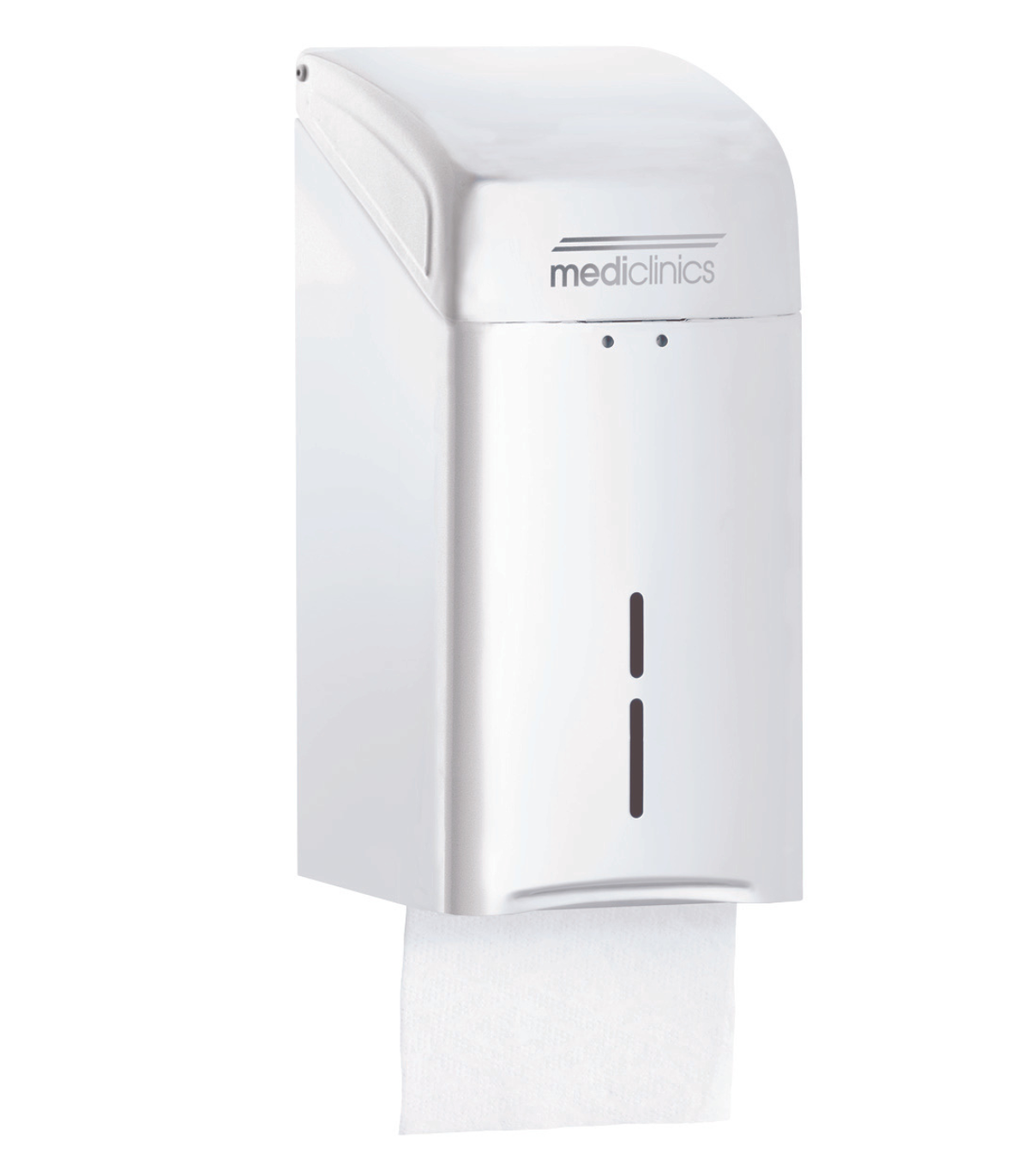 • 钢制白色环氧涂层、壁挂式折叠卫生纸分配器。