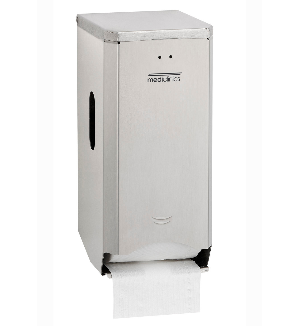 壁挂式卫生纸分配器,可容纳两个标准卷筒,采用 AISI 304 不锈钢制成,缎面处理