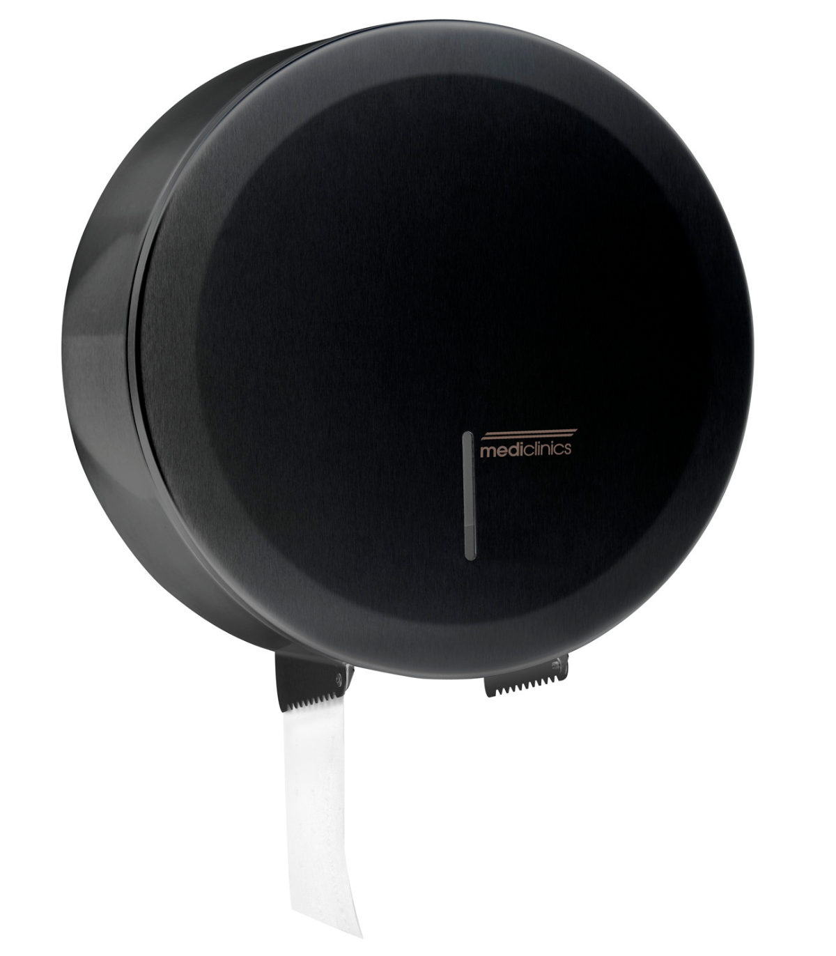 壁挂式圆形卫生纸分配器,可容纳 3 个标准卷筒或 1 个工业卷筒,最大直径为 275 毫米(可选),钢制,哑光黑色 环氧涂层