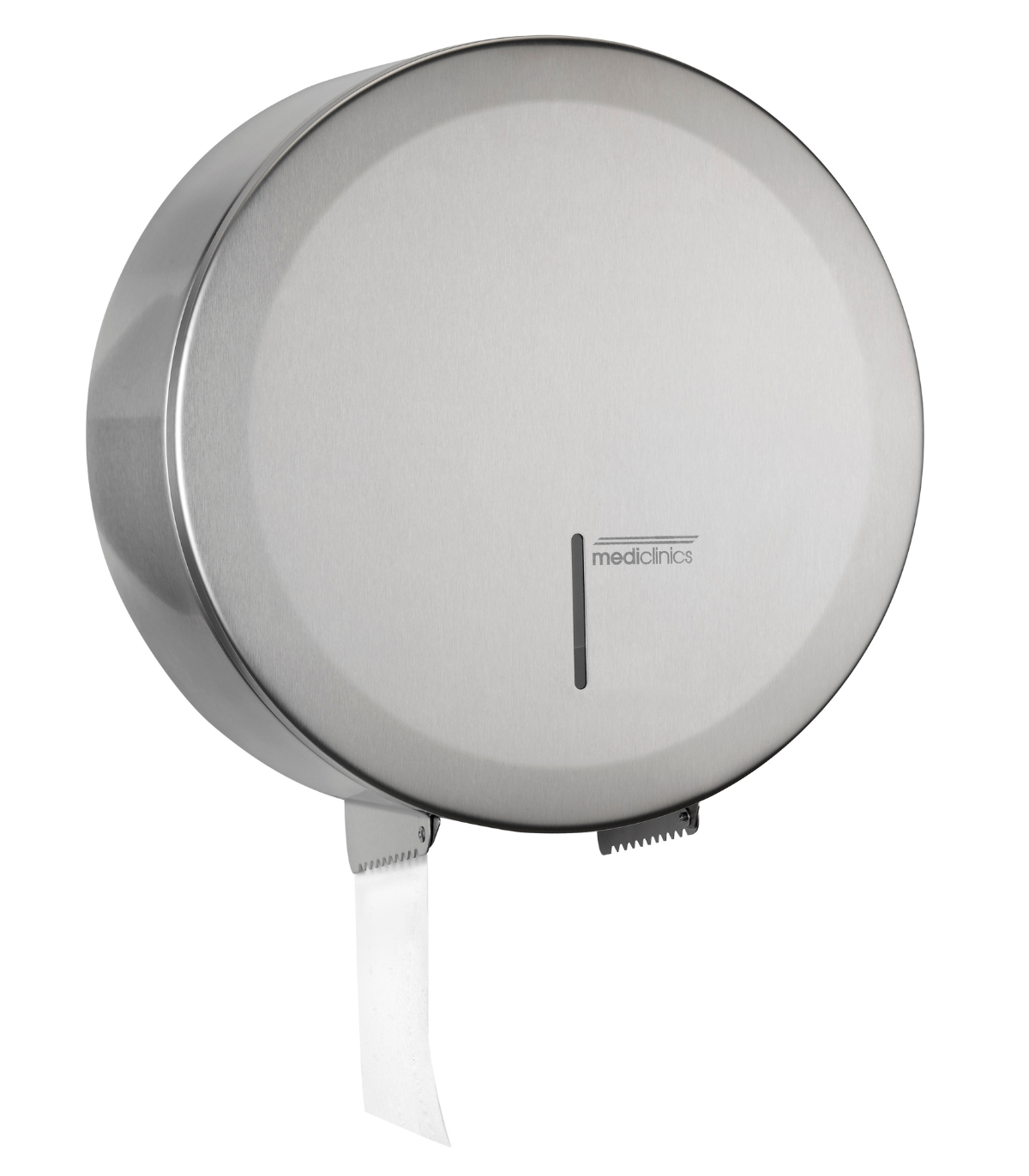 壁挂式圆形卫生纸分配器,适用于 230 毫米工业卷筒,采用 AISI 304 不锈钢制成,缎面处理