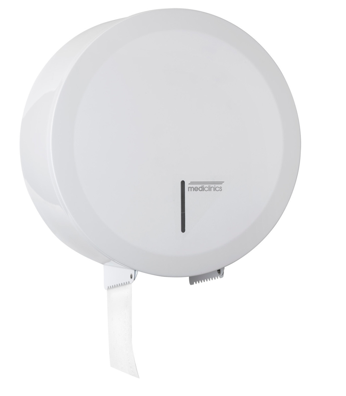 • 圆形卫生纸分配器,适用于 230 毫米的工业卷筒,表面安装,时尚的设计适合每个洗手间。
