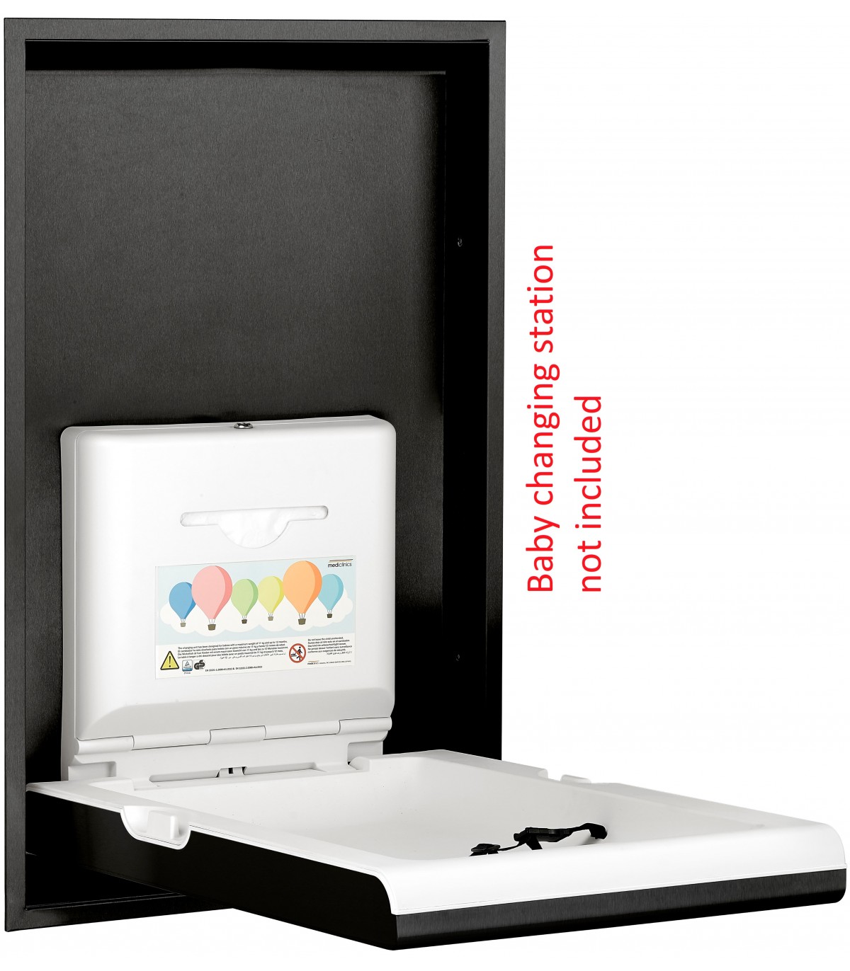 询问有关此产品的信息• 此套件可将 BabyMedi 垂直婴儿换尿布台嵌入其中,使换尿布台在关闭后可以与墙壁完全齐平,不会占用不必要的空间,从而可以创造出更多无障碍的开放空间。
