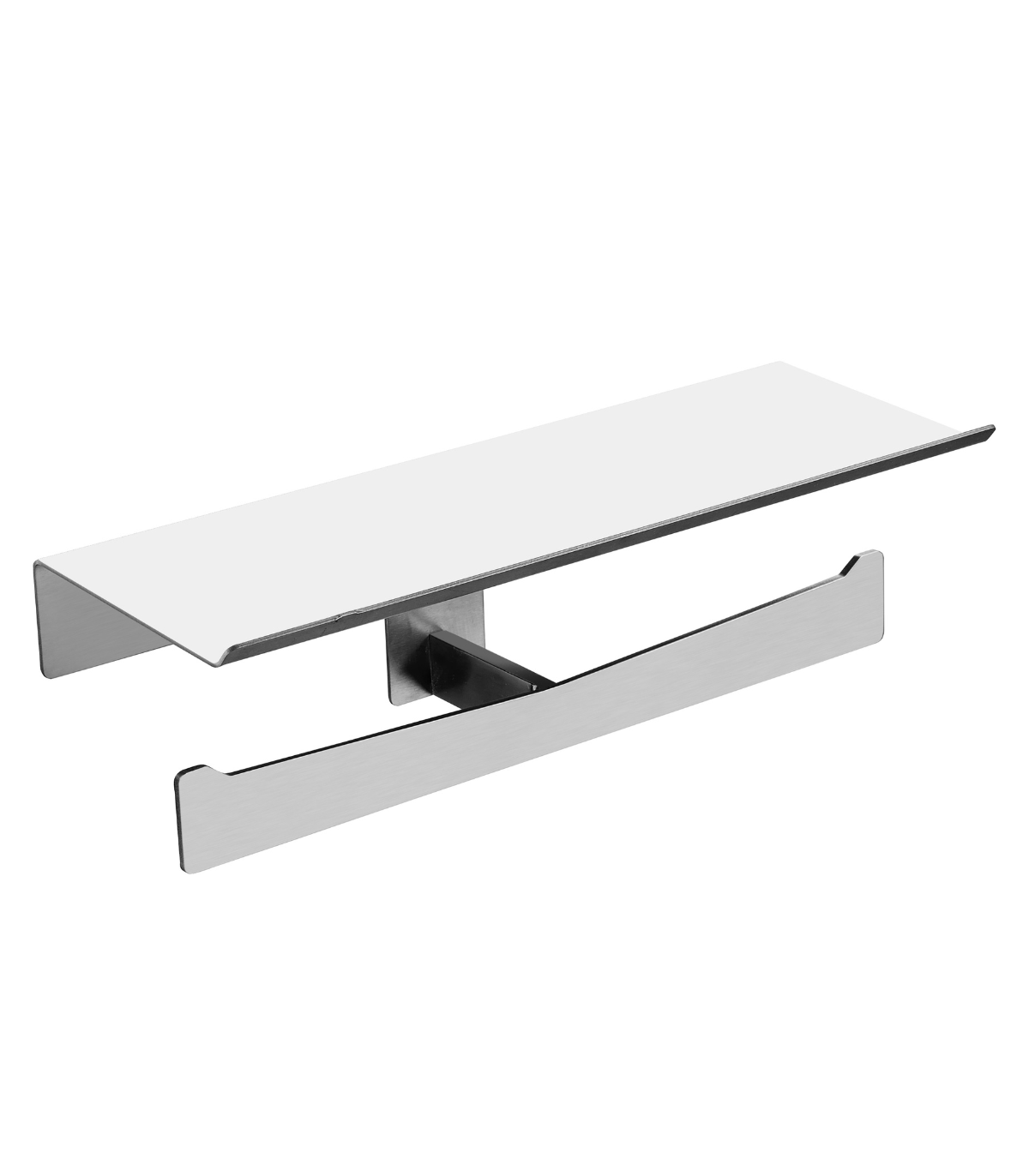 • 双厕纸架,带架子,可放置手机或其他小物品,采用 AISI 304 不锈钢制成,来自 Mediclinics 的 Aura 系列。