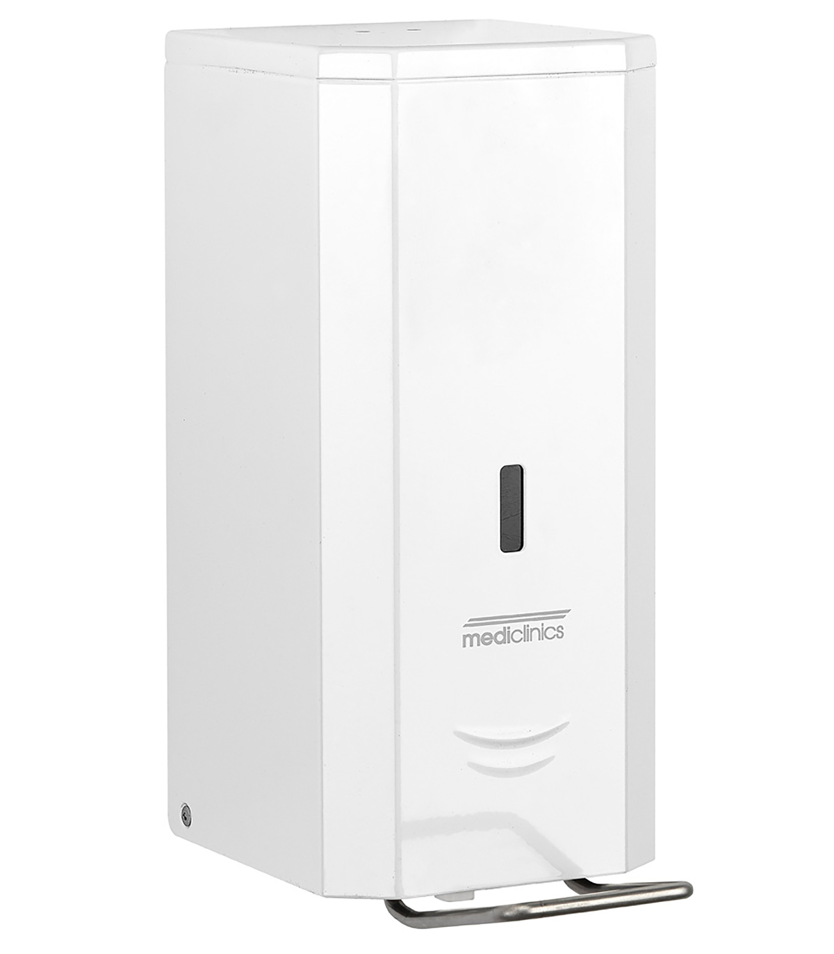壁挂式泡沫皂液器,由 AISI 304 不锈钢制成,白色环氧树脂表面,杠杆操作
