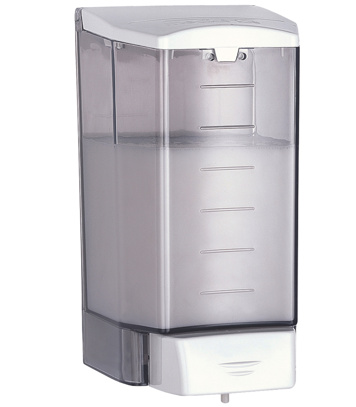 • 容量为1.1 升的壁挂式液体皂液器,采用热塑性ABS 制造,厚度为3 毫米,可直接安装在墙壁上,并通过按钮手动操作。