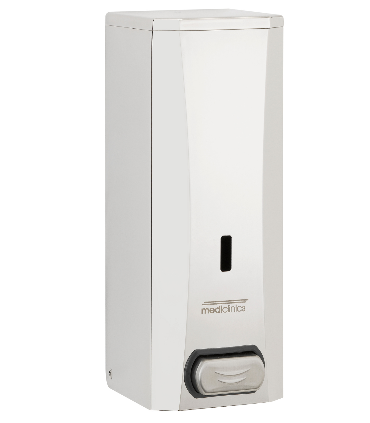手动壁挂式皂液器,采用 AISI 304 不锈钢制成,表面光亮
