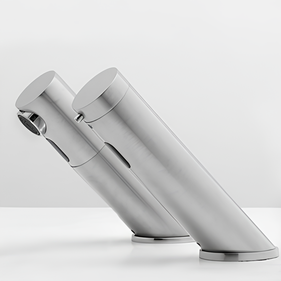Stern 的免触式皂液器可自动关闭且不会滴水,有助于确保浴室保持井然有序和整洁。结合 Green 免触式电子水龙头,可创造无菌自动化环境。