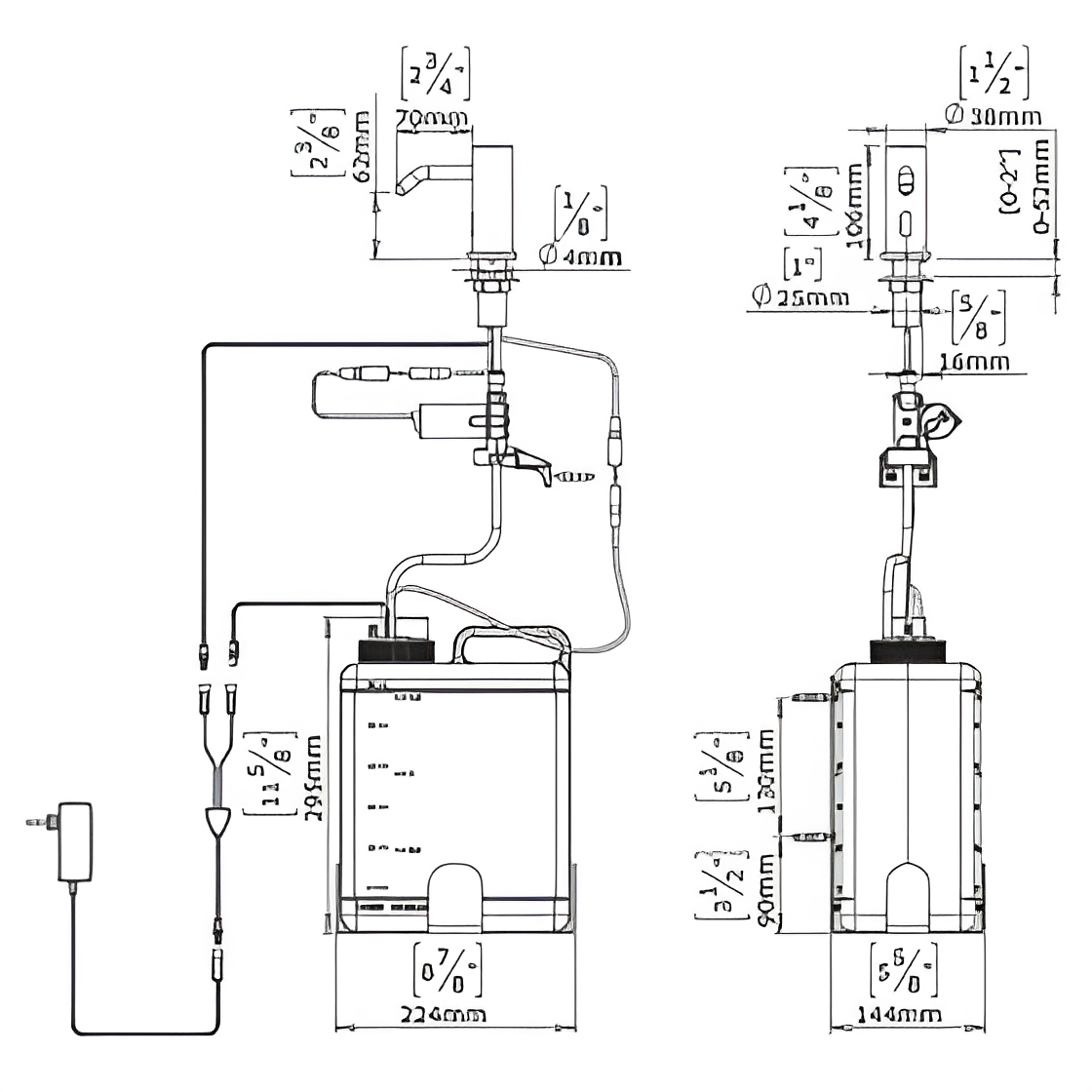 由红外传感器激活。可与任何具有推荐粘度的非专有肥皂一起使用。镀铬主体,可提供其他表面处理。包括一个 6 升肥皂罐,适用于人流量大的区域。配有指定的蠕动泵,可防止堵塞和回流。可通过遥控器调整设置:肥皂数量、肥皂罐补充、暂时关闭和恢复出厂设置。